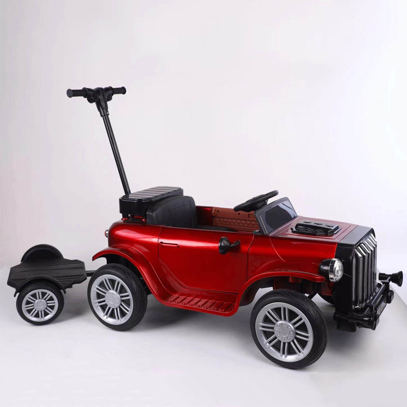 Los niños viajan en el coche Los niños empujan los coches